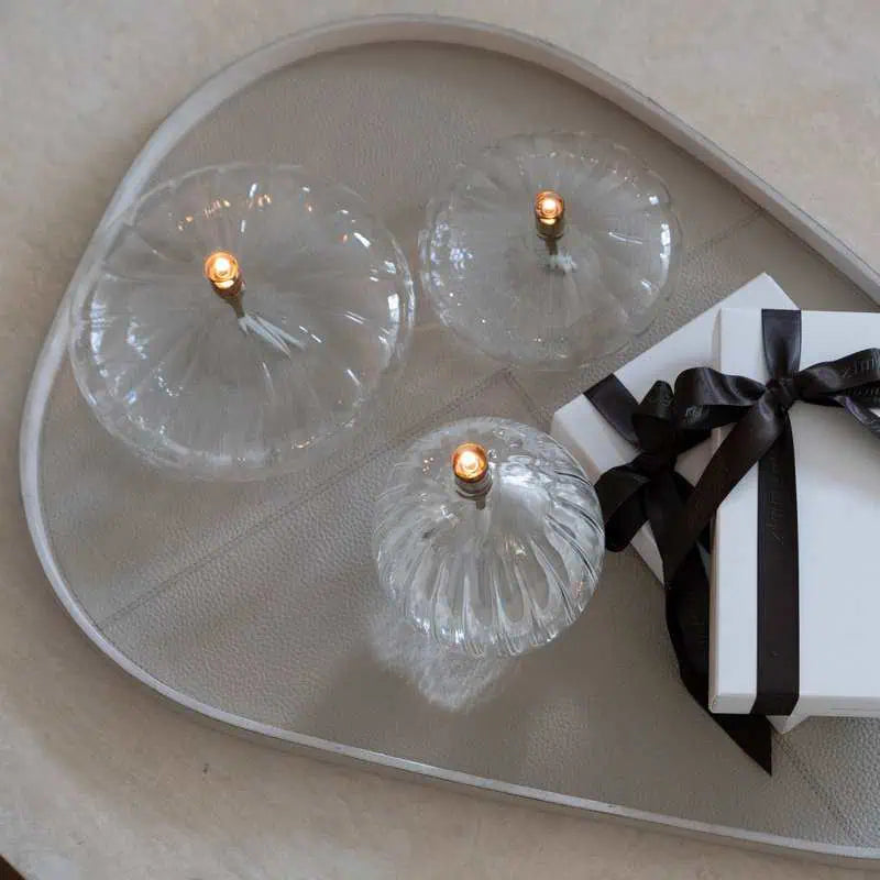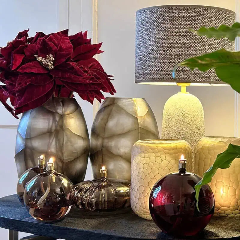 Erlebe pure Eleganz mit der Round Elegant Öllampe in Champagne Brass. Das warme Champagner-Glas trifft auf einen edlen Messing-Dochthalter und schafft ein luxuriöses Ambiente. Das runde Design verstärkt den warmen Schein der Flamme perfekt und macht diese Öllampe zum idealen Herzstück für deinen Weihnachtstisch oder als festlichen Akzent bei winterlichen Dinners.